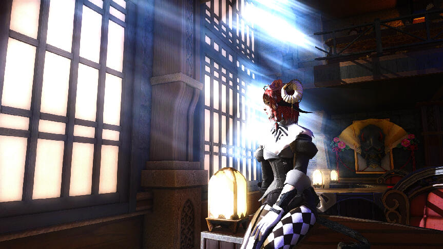 "Well met. My name is Nooj Meyvn, hatamoto and professional Black Mage for Clan Hiizuru. I am a mercenary and adventurer by profession and a hedonist Viera (currently Au'ra) by nature. Inviting me to go on an expedition, or to drink and play a game of chance is a sure-fire way to get to know me better. So, what will it be? Business or pleasure?"